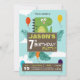 Ha en bra födelsedag med den här fantastisk dinosauriinbjudan! Har en leende grönt med ballonger och moln.
