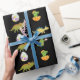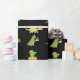 Cute Dinosaur Black Grönt Orange Tecknad Mönster Presentpapper