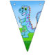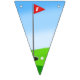 För ett barns födelsedagsfest, dekorera ditt utrymme med ett snyggt buntande flaggor med en lekfull dinosauer som håller en tält på en golfbana!