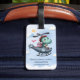 En charmeringshelikopter som lotsas av en skicklig dinosaurier tar flyget över ett lugnande himlar, redo till vilken din lilla är på väg till drömlandet. Den mjuka färg och den visuella konstruktionen skapar en god atmosfär, medan dinosauripiloten gnider sin fantasi. Ge är komfortens gåva och äventyr med denna unika personlig bagagetagg!