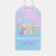 Cute Dinosaur Unicorn Rainbow ballong Birthday Presentetikett