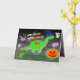 Cute Happy halloween Tecknad-dinosaurier med ditt namn 3D-kort för Pappra klipp och fetstil. En söt liten grönt tecknad dinosaur Diplodocus med blå guidhatt med gult stjärnor och lila Pteranodon som flyger i mörken natt himmel i ett förhistoriskt skådespel med stor orange pumpor, ett hemsökt hus och ett vitt fullt med måne och fladdermus i spöken i himmel, texten "Happy halloween", personalisera och byta "Namn"! Gör din egen söta Halloween-dino-staty med pumpa med ditt namn! Inuti kortet finns en söt grönt Diplodocus dinosaur med halloween hat, blå Stegosaurus med häxhatt och flyga Pteranodon i mörk liggande med anpassadet Bus eller godis!. Anpassa med bilder och texter! Ett sött 3D-kort för klipp och fet papperCraft-Roligt Halloween Presenter för den stora lilla dinosauer fläkt!