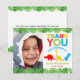 Den här roligten är ett tack som du utformar i vårt dinosauriefödelsedagstema med små dinosaurier och texten"stomp chomp roar" i ljusa, primära färger accentuerade med ett gräns tropiska löv. Klicka på knappen Anpassa om du vill flytta/ bilder och ändra texten och/eller fotot ytterligare! Variationer i denna utformning, ytterligare färger och samordnande produkter finns i vår butik, zazzle.com/doodlelulu*. Kontakta oss om du behöver den här designen för en specifik produkt för att skapa ditt eget unika matchande objekt! Tack så mycket för att du visar en DoodleLulu med 2-skräppost-kryp-design!