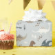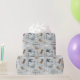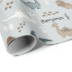 Personalized dinosaur wrapping paper with cute dinosaurs and dinosaur footprints on a soft light blue background. Customizable with a name, making it ideal for kids’ birthdays, baby showers, and dinosaur-themed gifts.