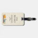 En bagagetagg med söt design med 4 dinosaurier. Två flyger och två är på marken. Skapat med vattenfärger.