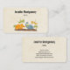 Affärskort med söt design med 4 dinosaurier. Två flyger och två är på marken. Skapat med vattenfärger.