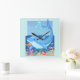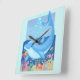 Cute Dolphin Bubbles Sea Life Fyrkantig Klocka