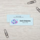 Affärskort med en bra illustration. En blå och lila delfin omgiven av söt färgade undervattensväxter.