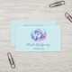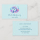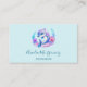 Affärskort med en bra illustration. En blå och lila delfin omgiven av söt färgstarka blommigtar under vatten.