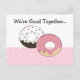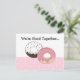 Två frostade munkar med sprinkler, en mjuk rosa gräns med små vita prickar. Ett sött budskap som säger "vi är bra tillsammans"