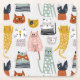 Cute Doodle Hand plockade Cat Mönster Underlägg Papper Kvadrat