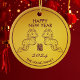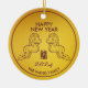 Fira det kommande året 2024 med vårt år för den runda keramiska ornamenten i Dragon guld. Anpassa det med ditt namn så att det blir unikt för dig och låt den vackra draken ta med glädje och bra förmögenhet var du än ställe den är. Dragillustrationen och tecknet är originalteckningar som är digitalt skapat av artbybiyan. Kontrollera matchande kort och presenter i vår butiks "Dragons år"-samling.