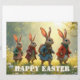 A delightful Easter scene featuring four adorable bunnies walking through a sunny spring meadow. Dressed in charming outfits, they bring warmth, joy and a playful atmosphere perfect for celebrating Easter and the beauty of the season.