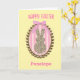 A cute Easter bunny card for her, which features a leopard print bunny inside a gold frame with Spring colors. You will be able to personalize the front with her name and the inside card message. This would make a sweet Easter card keepsake for girls.