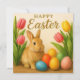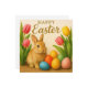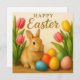 Happy Easter Card. Cute bunny, tulips and eggs.