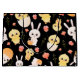 Celebrate spring with this adorable, whimsical Easter pattern! Featuring fluffy yellow chicks (some hatching from eggs, some holding carrots or baskets), sweet white bunnies, and delicate coral-pink tulips on a clean white background. The seamless, repeating design is perfect for festive apparel, home goods, and gifts — bringing joyful, childlike charm to every occasion.