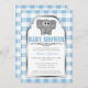 Cute Elephant Blue Gingham Baby Shower-inbjudninga Inbjudningar