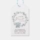 Cute pojke dusch-partiet föredrar märkre av gåva med texten "En söt liten jordnöt är på väg" och Tack" i en blandning av enkel typografi och ett snyggt med en hjärtsvikt, och en vattenfärg på en pastellblå baby-elefant i en krans av eucalyptus grey från grönt. Anpassa med mor till namn och duschdatumet.