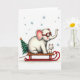 Cute Elephant Hund Sled jul Card Whimsical Il Kort