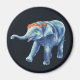 Cute Elephant in Blue med andedräkt från blommor. Magnet
