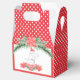 Den här söta vita elefantdesignen har en vattenfärgselefant som bär en julhatt på en röd och vit polka punkt mönster. "Tack" är skriven i vitt på en röd banderoll.