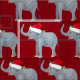Vacker röd elefantväv till jul med vackra elefanter i en Jultomten-hatt.