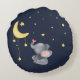 Cute Elephant med liten fjäril under Måne Rund Kudde