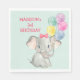 Cute Elephant med Balloons Födelsedagsfest Papper Napkins. Fira med den här roligten safari-gröntens temainstruktion. Färgillustration av en elefant med en rosa buggar med färgstarka ballonger i sin båge.