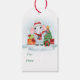 Den söta bilden på denna märkre med julklappar är av en berömvärd elefant som bär en röd Jultomten hatt och står bredvid paket och ett dekorerat Helgdag. Den stiliserade texten i grund på framsidan säger "God jul" i grönt och rött. Baksidan av märkrn har samma elefantbild, med anpassningsbarnas text i grönt. Den här märkrn matchar den pappra julomslaget för Confetti Heart Cute Elephant i vår butik.