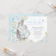 Cute Elephant Soft Blue Blommigt Boy Shower Inbjudningar