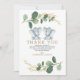 Den här enkla men ändå elegant tack du har på kortet två vackra spädbarn av elefant och en modern vattenfärgsgrej i mjuk grönt och guld. Det kommer med en matchande löv mönster på baksidan. Använda mallens fält för att lägga till information. Om du vill ändra teckensnittet stil, färg eller textplacering klickar du helt enkelt på knappen "Anpassa ytterligare".