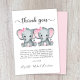 Tack för att du har ett kort med "tack" i ett grått-skript i snyggt med dekorationer och rosa av tvillingelefanter i flicka. Anpassa ditt tackmeddelande och lägg till ditt/dina namn i ett namnteckning skript eller lämna tomt för en handskriven anteckning.