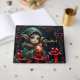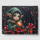 Cute Elf Child in Grönt Hooded Jackar med julprydnad - Magic Fantasy Helgdag Design. Ett sött elf-barn med stort ögon och stort öron bär en grönt päls-trimmad jacka och håller en glödande julprydnad i orange. Omgiven av presentboxar med rött rosett band, gräs grenar och bär, känns denna magiska helgdag både festlig och mystisk. Mörken arrangerar ram i syfte att se till en förändrad skog och gör denna perfekt till fantasi älskare, julkonst fläkt och magisk helgdag.