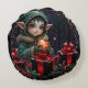 Cute Elf Child in Grönt Hooded Jacka Rund Kudde