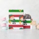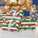 Svälla pappert med ett sött mönster mot en röd och grönt rand bakgrund. Perfekt till jul firande.
