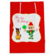 Cute elf och dess valp hund på röd bakgrund Gift Bag. Glad helg kan vara personlig.