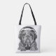 En lysande illustration av en hund med stora hörlurar. Den svarta och vita designen ger en liten nyhet.Den lekande och unika teckningen ger ett leende till någons ansikte och skapar den som en idealisk gåva till både hundälskare och musikentusiaster.