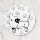 Cute Little English Bull Terrier, vit med svart öga-plåster, över en gråskalebakgrund av tass avtryck...klassisk! Anpassa till dina önskemål (ta till och med bort all text).