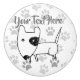 Cute Little English Bull Terrier, vit med svart öga-plåster, över en gråskalebakgrund av tass avtryck...klassisk! Anpassa till dina önskemål (ta till och med bort all text).
