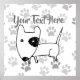 Cute Little English Bull Terrier, vit med svart öga-plåster, över en gråskalebakgrund av tass avtryck...klassisk! Anpassa till dina önskemål (ta till och med bort all text).