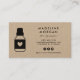 Ett papprare affärskort med sid kraft för en oljedistributör eller en specialist på eteriska oljor med en söt ikon för olja i flaska med ett hjärta, rena moderna typsnitt och social-medieikoner.