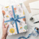 Cute Fall Forest pattern featuring woodland animals like: fox, mouse, reindeer and cat. Including trees, kites and mushrooms in muted fall colors on cream background.