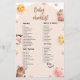 Denna bedårande baby shower Checklista Aktivitetskort har ett charmigt tema med gårdsdjur med söta illustrationer av en ko, kanin, kyckling, häst och gris, omgivna av glada blommor och en leende sol. De mjuka pastellfärgerna och den fantasifulla designen skapar en varm och inbjudande atmosfär. Besök vår butik för att se hela vår Bruna Söta Gårdsdjur kollektion.