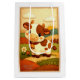This charming design features a handcrafted-style felt cow with soft stitched details, set in a peaceful countryside scene. Surrounded by rolling hills, flowers, a wooden fence, fluffy clouds, and a rising sun, the artwork has a warm, cozy aesthetic reminiscent of handmade fabric appliqué. The gentle textures and earthy tones create a playful yet comforting rural theme, perfect for gifting occasions that call for a touch of sweetness and rustic charm.
