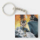 Två illrar som stjäl en uppsättning nycklar ovanpå en stonecherub.