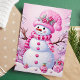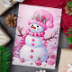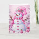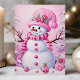 Cute Festive Rosa Snögubbe jul Helgkort