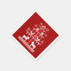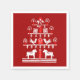 Handritad illustration med skandinavisk folkkonst med Julgran dekorerad med ljus, fåglar, grenar, hus, ängel med trumpet överst och dala-hästar med vit och röd toner, för modern julhelg decor, för en party vid jul