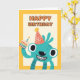 Kasta första födelsedag för ett småbarn. Ett leende tecken bär på en födelsedagshatt och håller en biet på födelsedagskalas med ett ljus för det speciella första födelsedagsevenemanget. Art, bild och versell copyright © Shoaff Ballanger Studios, 2022.