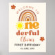 Celebrate your baby's first birthday with our boho-style design featuring the phrase "ONE-DERFUL" in retro typography and a boho-style sunburst. This design is perfect for celebrating your little one. The design features retro colors and can be personalized with your party details. Don't hesitate; get yours now!