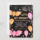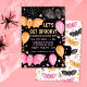 En söt pastel-inbjudan från halloween fest som innehåller fläckig söt fladdermus, ballonger, spindlar och websar och konetti i pastellernas rosa och orange mot svart bakgrund. Anpassa den idag! Se hela matchande party-samling.